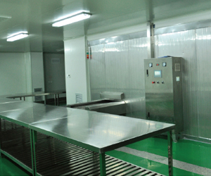 網(wǎng)帯傳送在庫風(fēng)返回, 進(jìn)貨欄五面保溫, 貨口處附以可調(diào)不銹鋼擋風(fēng)保溫板。 出貨欄六面保溫,可實(shí)現(xiàn)自動(dòng)落料,保持網(wǎng)帶傳送在低溫下運(yùn)行。采用可調(diào)熱波動(dòng)吹風(fēng)方式,提高冷風(fēng)著力點(diǎn)及速凍效率。除進(jìn)出貨口外, 凍品在傳送隧道風(fēng)部相對(duì)封閉,社絕凍品翻起,吹出網(wǎng)帯。